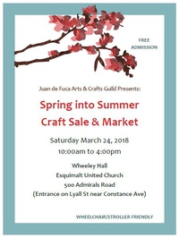 March 24th – Presented by the Juan de Fuca Arts and Crafts Guild…. Local, handmade items…. Support local and stop by – Free Admission – More Info