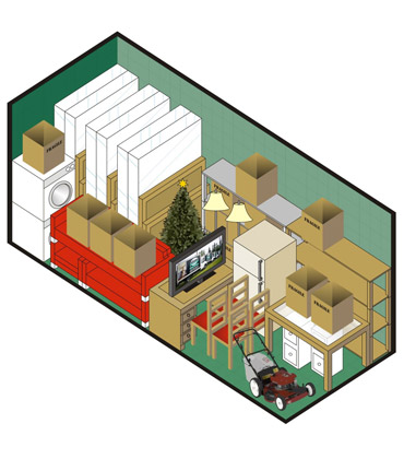 Contents of a three bedroom house, including appliances will be accommodated nicely into this storage locker. These lockers are also easy access which will make your move easier and faster. Please take the time to visit our storage facilities as the cleanliness and friendly staff are another benefit that is often overlooked.